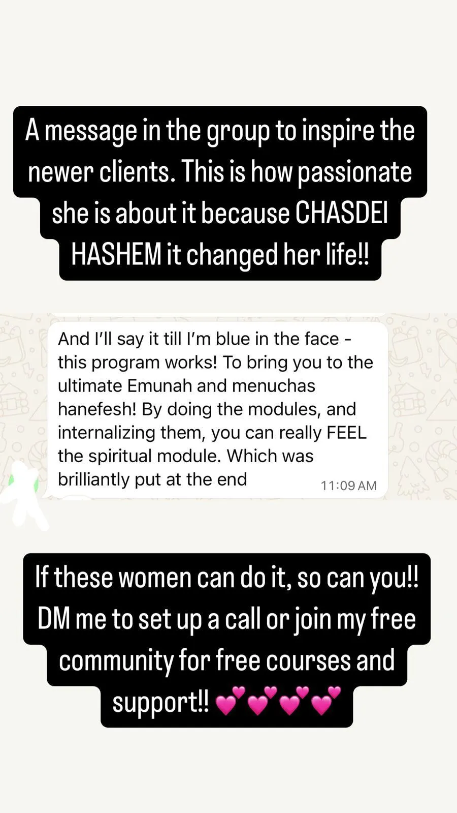 For over 15 years I’ve helped more than 1,000 Jewish women transform their emotional lives so they can move through motherhood, marriage, and life feeling calmer, lighter, and more connected to themselves.